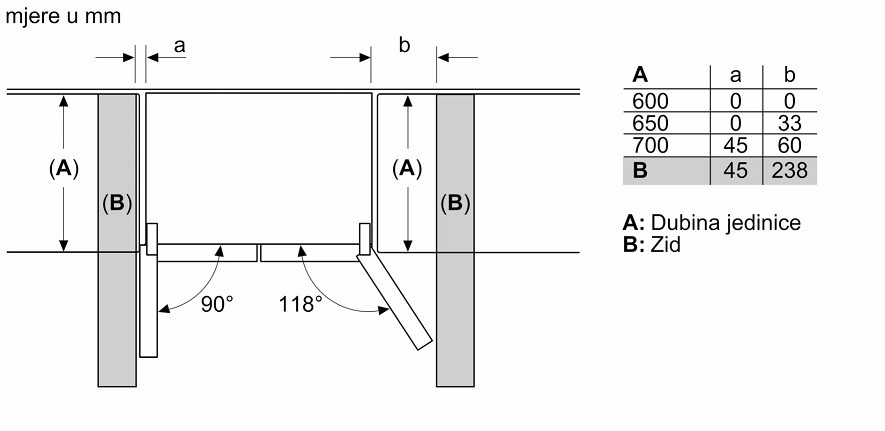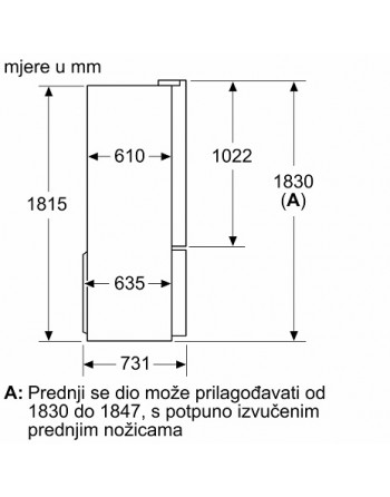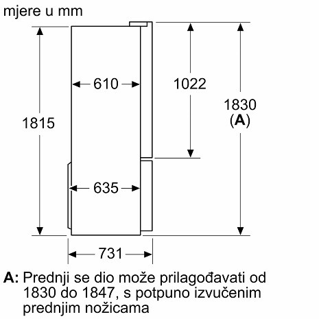 Zbroj zapremnina odjeljaka hlađenja: 405 l