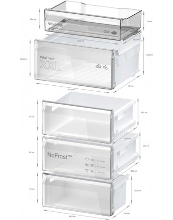 - VitaFresh XXL kapacitet: u izuzetno velikim ladicama hladnjaka s kontroliranom temperaturom duže održava svježinu hrane.