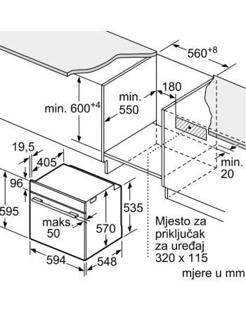 Maksimalna visina ugradbene niše: 595 mm